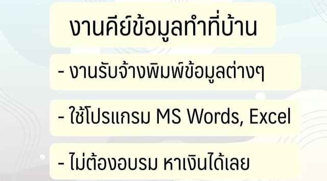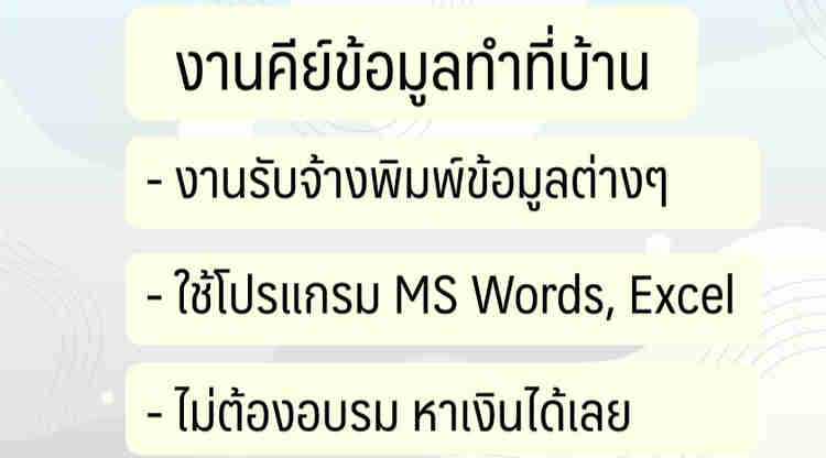 แบบสอบถาม ซึ่งอาจต้องใช้จํานวนหลายพันแบบสอบถามตรงนี้ล่ะครับที่อาจเป็นงานของคุณ นั่น คือการรับจ้างตอบแบบสอบถาม ผมไม่ได้หมายความว่าให้คุณเอาแบบสอบถามทั้ง 1,000 ใบมานั่ง ติ้ก ๆ ข้อมูลคนเดียวนะครับ แต่หมายถึงการไปรับงานแบบสอบถามงานวิจัยของนักศึกษาคนนั้น ๆ และเอาไปรวบรวมข้อมูลมาให้สําหรับราคากรอกแบบสอบถามนั้น หากเป็นการกรอกแบบสอบถามราคาต่อ 1,000 ใบนั้นอาจอยู่ที่ 3,000 – 10,000 บาท หรือมากกว่านั้น แล้วลองคิดดูนะ ครับว่า ถ้ามีจํานวนของลูกค้ามากกว่า 10-100 คนต่อรอบบางทีรายได้ของคุณต่อรอบอาจมากกว่า 100,000 บาทเลยก็ได้