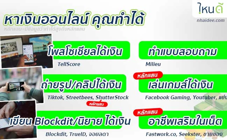 ถ้าคุณอยากหาเงินออนไลน์ การทำอาชีพเสริมทำให้มีรายได้เพิ่มมากขึ้น โดยอาชีพเสริมที่คุณสามารถทำได้ก็คือ การหาเงินจากช่องทางออนไลน์โดยไม่ต้องลงทุน แต่ได้เงินง่ายๆ และได้เงินจริง การสร้างรายได้ออนไลน์ก็มีหลากหลายอาชีพ เดี๋ยวเราลองไปดูกันเลย